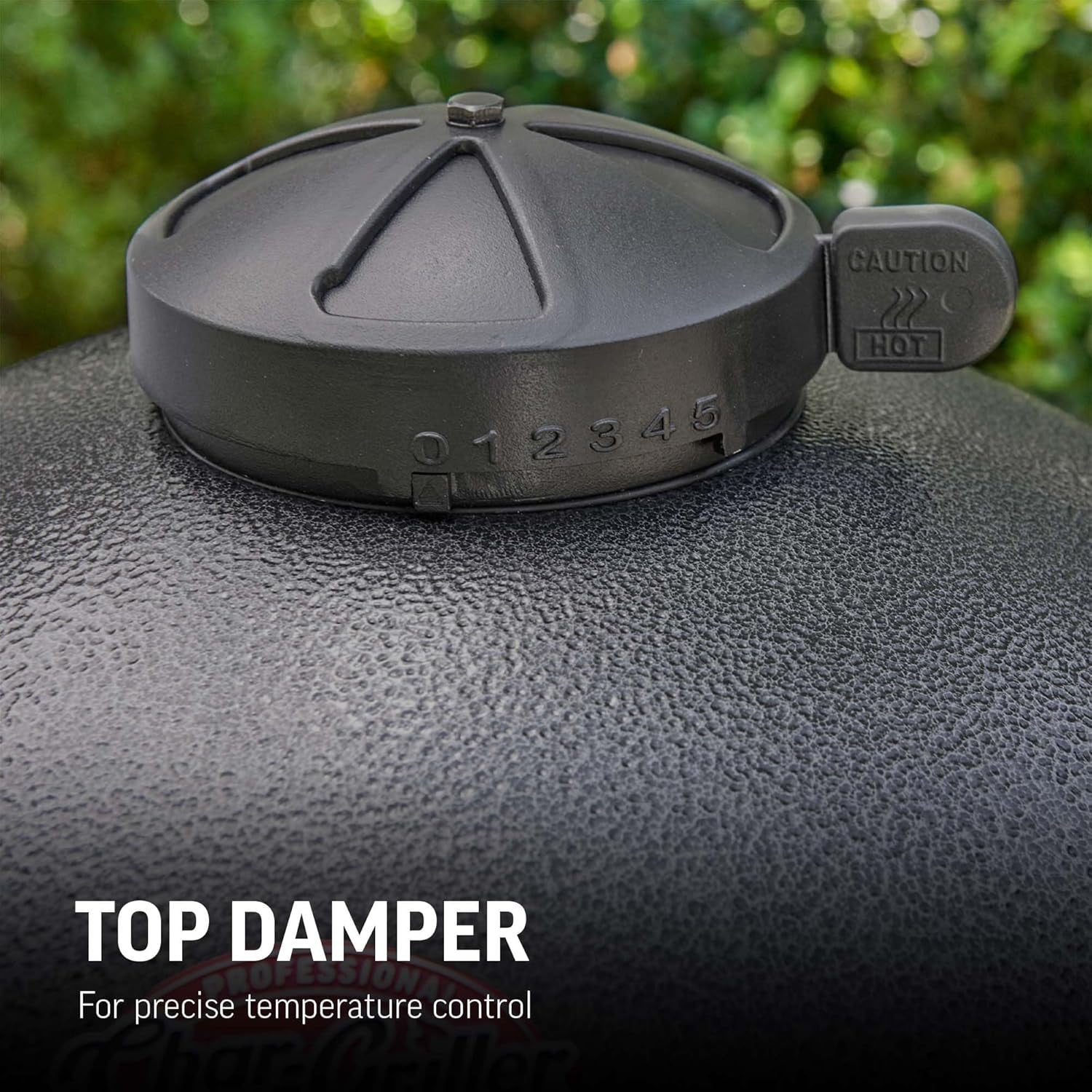 Char-Griller® AKORN® Kamado Charcoal Grill and Smoker with Cast Iron Grates. Warming Rack and Locking Lid with 445 Cooking Square Inches in Graphite. Model E16620