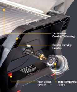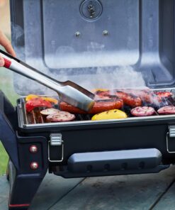 The Grill2Go x200 even features a die-cast firebox and aluminum lid built to survive the adventure away from home. The lid is hinged to the rest of the grill to keep things simple when you have limited space but want to cook. the large handle allows you to open and close the lid safely and easily. When it’s time to go. packing up is hassle-free with the securely latching top and dual Cool-Touch heat-resistant handles. Quality rust-resistant and durable steel construction with a black porcelain finish helps to extend the life of your grill – plus. the stainless steel cooking grate is a snap to clean.