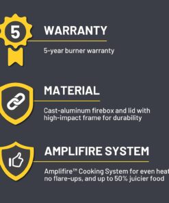 - COOKING TECHNOLOGY: The Amplifire cooking system grills juicier food. eliminates guesswork and prevents flare-ups. Our emitter plate transfers heat from the flame directly to the grate. vaporizes drippings and sends the flavor back into your food.