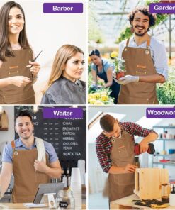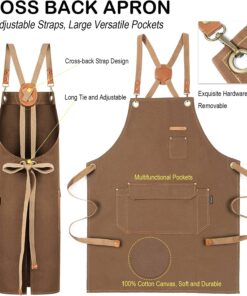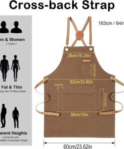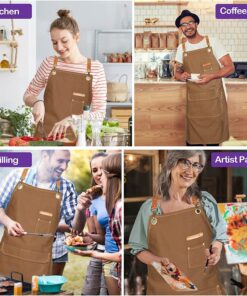 Chef Apron for Men Women with Gift Box Pack. Cross Back Apron with Pockets for Kitchen Cooking Baking Artist Painting. Cotton Canvas Work Aprons for Shop. Garden. Restaurant. Cafe (Brown. M to XXL)