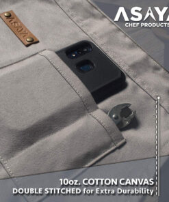 - EXPERT CRAFTSMANSHIP – Asaya Chef. BBQ and Work Aprons are designed from high quality materials and built to last through years of wear and tear in the kitchen or workshop They are hand crafted with double stitched 10oz cotton canvas. brass hardware and leather.