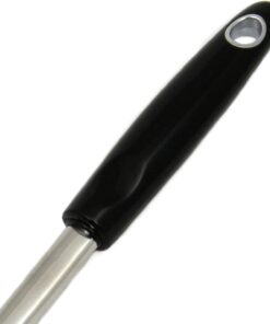 - Stainless steel construction prevents rust while a plastic handle provides comfort