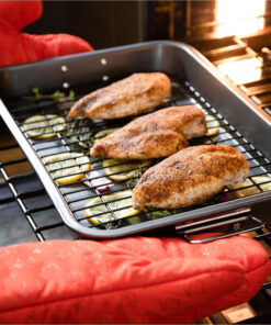 - ✅ NON-STICK COATING: No worries about half your meal getting stuck to the pan’s bottom! This pan and baking rack for oven cooking is mess-free and easy to clean. Remove the rack and use as a regular baking pan for brownies and other baked goods.