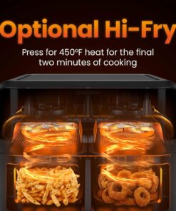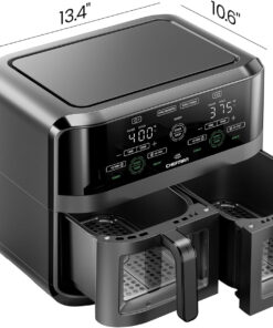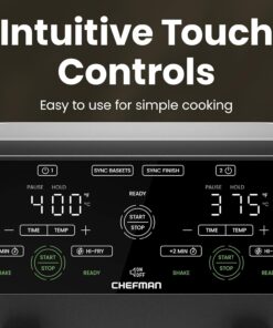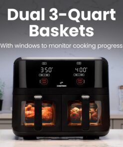 CHEFMAN 6 Quart Dual Basket Air Fryer Oven with Easy View Windows. Sync Finish. Hi-Fry. Auto Shutoff. 2 Independent 3Qt Nonstick Dishwasher Safe Frying Baskets. Digital Double Air Fryer – Black