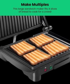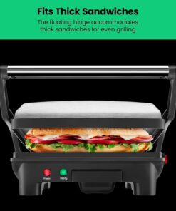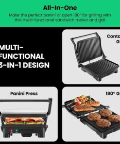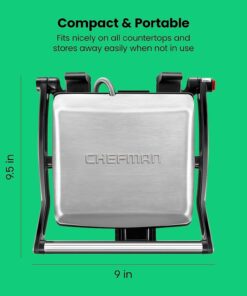 Chefman Panini Press Grill and Gourmet Sandwich Maker Non-Stick Coated Plates. Opens 180 Degrees to Fit Any Type or Size of Food. Stainless Steel Surface and Removable Drip Tray. 4 Slice. Black