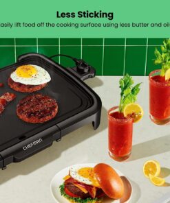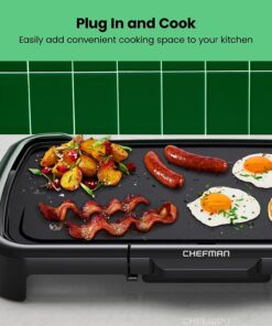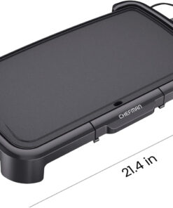 The Chefman All-Purpose Nonstick Extra-Large Griddle is the ultra-convenient griddle grill combo for all your cooking needs. From breakfast to dinner. this generously-sized griddle instantly adds extra cooking space to your kitchen with temperatures from 200-420°F for added versatility. The nonstick surface allows for easier food removal and the slid-out drip tray helps keep oil and grease away from your food. When it’s time to clean up. simply remove the temperature control and clean the griddle in the dishwasher or sink.