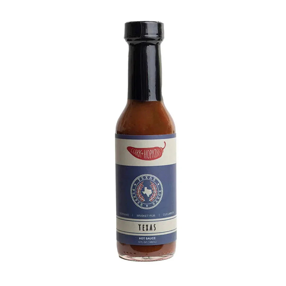 Embark on a flavorful journey through the Lone Star State with this Texas-inspired hot sauce. Crafted with the essence of Texas in mind. Clark + Hopkins selected serranos. cucumbers. and brisket rub to capture the spirit of the region’s renowned barbecue culture.