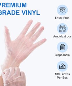 Clear Vinyl Exam Gloves. Latex-Free. Disposable Medical Gloves. Cleaning Gloves. Food Safe. Powder-Free. 4 Mil