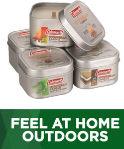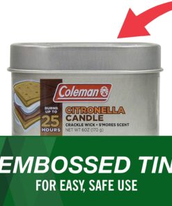 Set a nostalgic ambiance in outdoor spaces with this Coleman Scented Tin Citronella Candle three pack. Crafted with crackle wood wicks. these long lasting outdoor candles add the sound of a crackling fire to your outdoor entertaining spaces. This set of citronella oil candles includes pine. s’mores and campfire scented candles to make your outdoor space smell great. Recyclable tin containers protect each outdoor citronella candle and make them safe and easy to use. and the embossed design adds a nostalgic touch. Great as camping supplies. patio accessories or picnic supplies. these candles offer long-lasting use with up to 25 hours of burn time per candle.