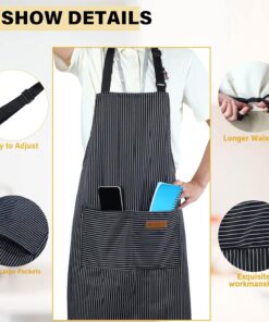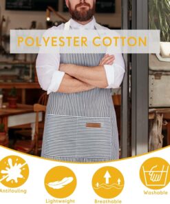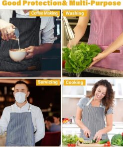 Cooking Apron with Pockets Waterproof Baking Apron Soft Chef Kitchen Aprons Cotton Polyester Blend Adjustable Bib Aprons for Women Men. Crafting BBQ. Black. Blue. Pink. Grey Stripes(4 Pcs)