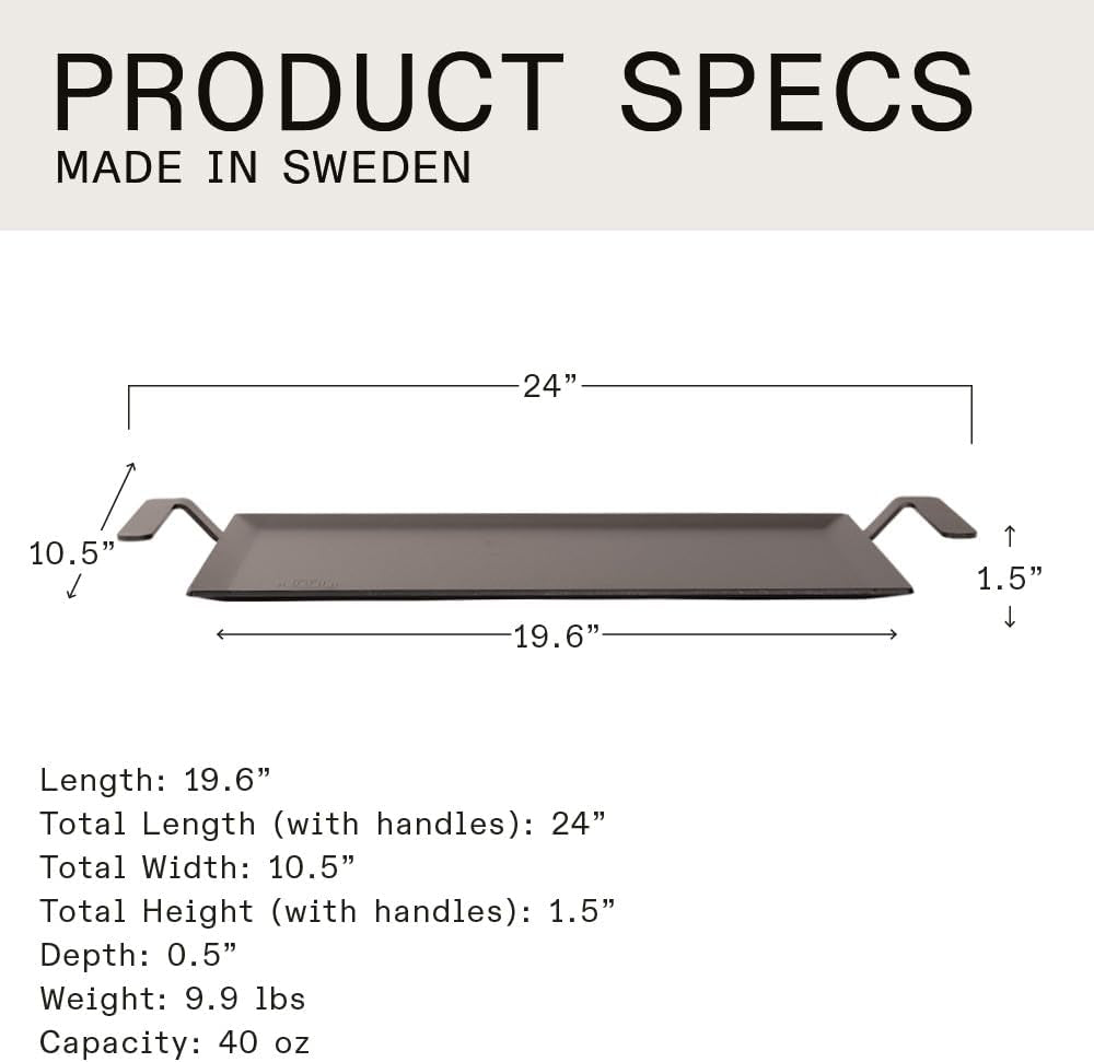 - Total Width: 10.5 | Cooking Surface Area: 8.5 x 17.5 | Height (with handles): 1.5 | Depth: 0.5 | Total Length (with handles): 24