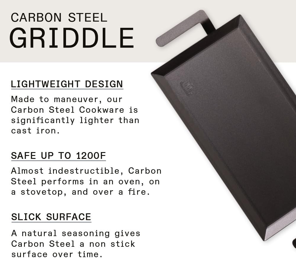 Incredibly durable. Carbon Steel can go from oven to stovetop to open flame.