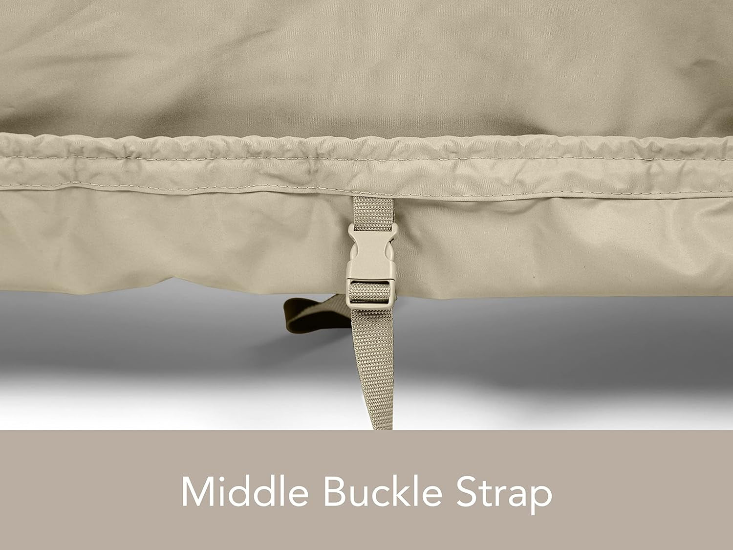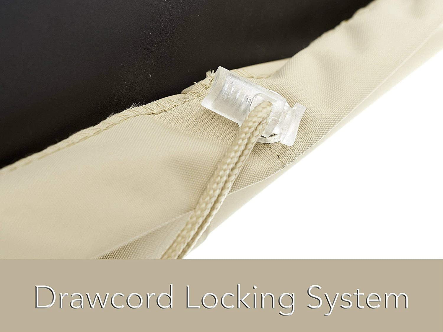 - DURABLE FEATURES: Never worry about losing your bbq grill cover to high winds. Our adjustable drawcord and elastic hem details provide a unique tightened fit. Our grill covers for outside use utilizes double-stitched seams to repel moisture and protect your propane and gas grill. This heavy-duty cover has a breathable mesh vent. buckle strap security. superior dirt and UV–resistance. and acts as a weatherproof bbq cover to combat extreme outdoor conditions.