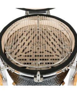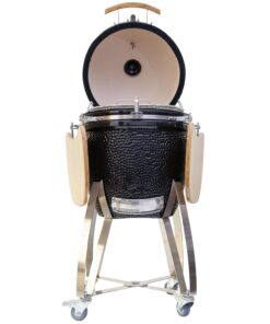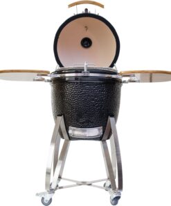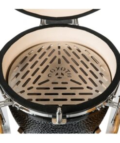 Experience the rich flavor of charcoal grilling with the Coyote Asado Kamado-Style Grill. This outdoor cooking essential is perfect for grilling. smoking. and searing. providing you with versatile culinary possibilities. Crafted from high-grade ceramics. the Asado grill retains heat efficiently. ensuring consistent cooking temperatures for extended periods. Its dual vent system enables precise temperature management. allowing you to achieve the perfect balance between low and slow cooking or high-temperature searing. With a diamond laser-cut signature cooking grate. you can achieve beautiful sear lines on your food. Enjoy over 254 square inches of cooking space and easily keep track of cooking temperatures with the integrated thermometer. The stainless steel cart with side shelves provides additional workspace and mobility. making outdoor cooking a breeze.