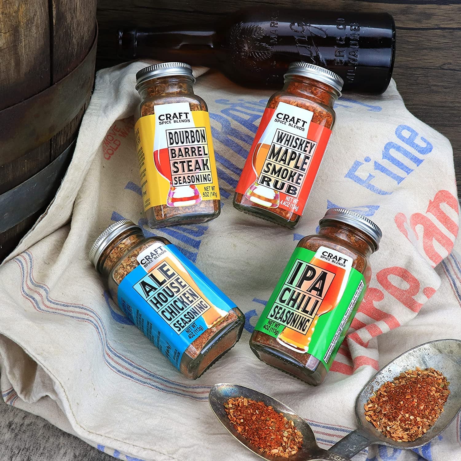 - SMALL BATCH crafted for maximum flavor. This spice set includes ALE HOUSE CHICKEN SEASONING. WHISKEY MAPLE SMOKE RUB. IPA CHILI SEASONING. and BOURBON BARREL STEAK SEASONING. This well rounded collection will give him or her the flavors to make amazing RIBS. CHICKEN. HAMBURGERS. STEAKS and more.
