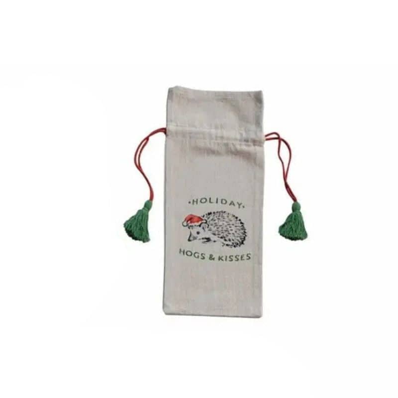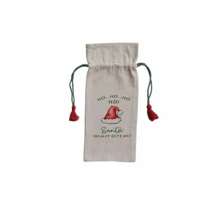 Add a playful and refined touch to your holiday gifting with these cotton chambray drawstring wine bags. Each bag features a charming holiday image and saying. framed by colorful multi-color tassels that bring festive flair. Crafted from smooth chambray fabric in a classic rectangle shape (14″L × 6″W). these bags are as stylish as they are functional. Perfect for presenting. carrying. or decorating with wine bottles. they make a thoughtful and decorative gift for wine lovers.