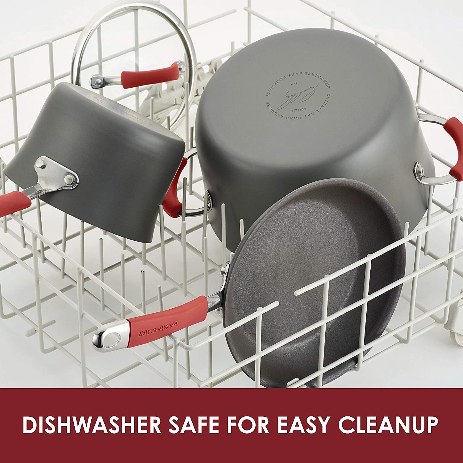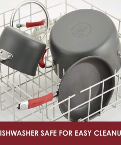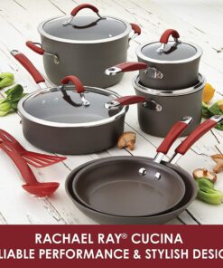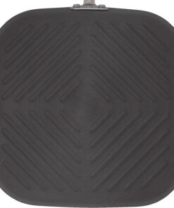 Cucina Hard Anodized Nonstick Grill/Deep Square Griddle Pan. 11 Inch. Gray with Red Handles