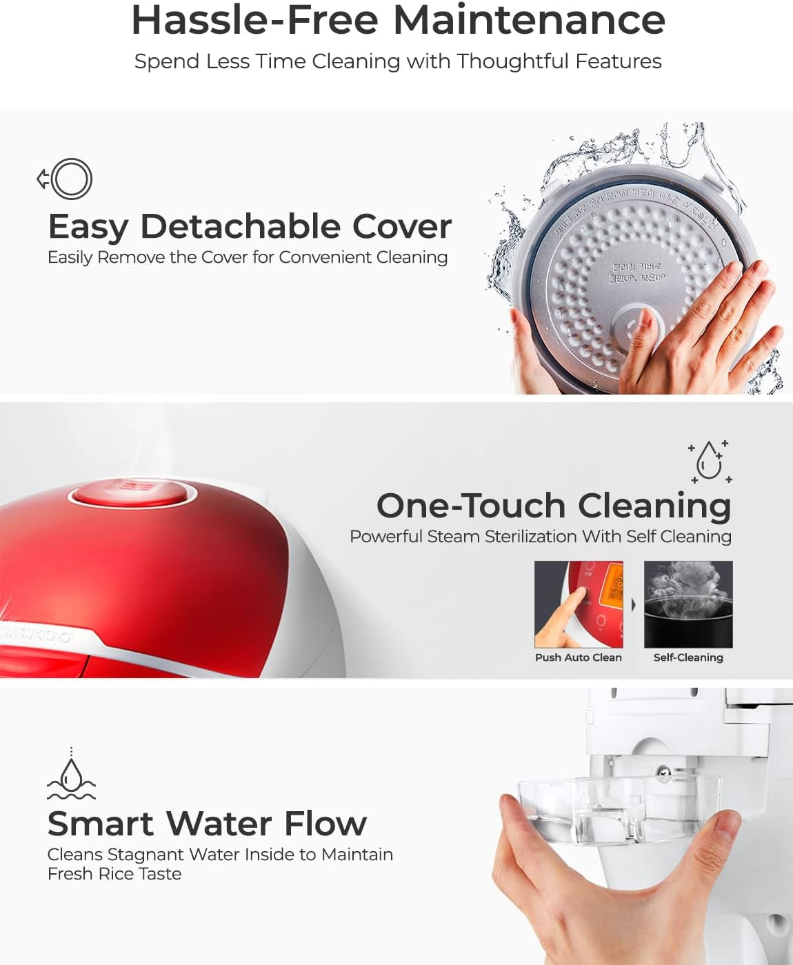- EASY TO USE & CLEAN: With a high-visibility LED display and simple menu functions. this korean rice cooker is both convenient and efficient for quick meal prep. Once your done. the self-clean setting along with non-stick inner pot and removable lid makes clean up a breeze.