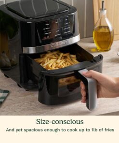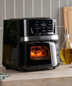 Cook everything from simple snacks to main meals with the versatile Cuisinart Basket Air Fryer. This kitchen countertop electric fryer lightens up fried foods with fast and even hot-air-powered cooking — using little or no oil — for making healthy meals with the crispy crunch you love. Three popular pre-programmed settings. a toss notification to flip food mid-way through cooking. and convenient viewing window into the fryer basket make it easy to air fry. roast. and bake food with delicious results every time. Lighten up your menu with the convenient air fryer that does more for mealtimes!