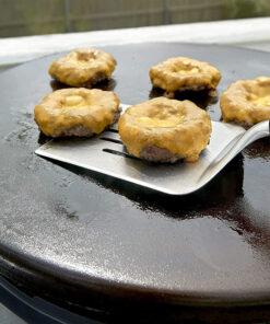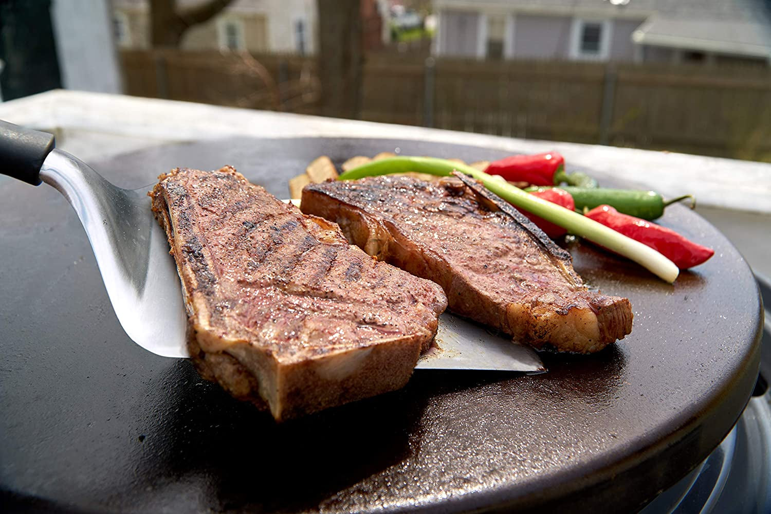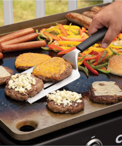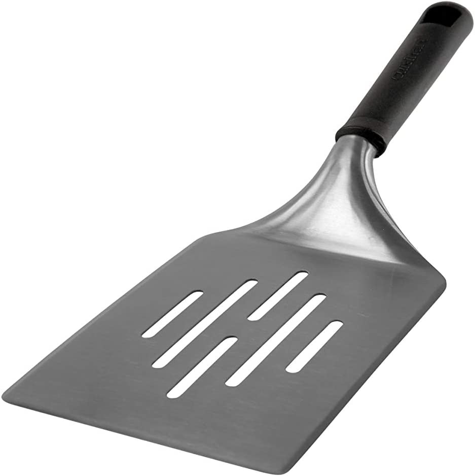 Get the spatula that can handle any job; the Cuisinart XL BBQ Spatula. This spatula is ideal for lifting small or large items on the grill or griddle. Lift multiple burgers at a time. two sirloin steaks. or larger cuts of meat like brisket or pork shoulder all with one spatula. The beveled edges are perfect for quick chopping while cooking and the stainless steel construction will ensure this spatula will be by your grill for years to come. When you’re finished cooking. hand wash the spatula with regular dish soap.