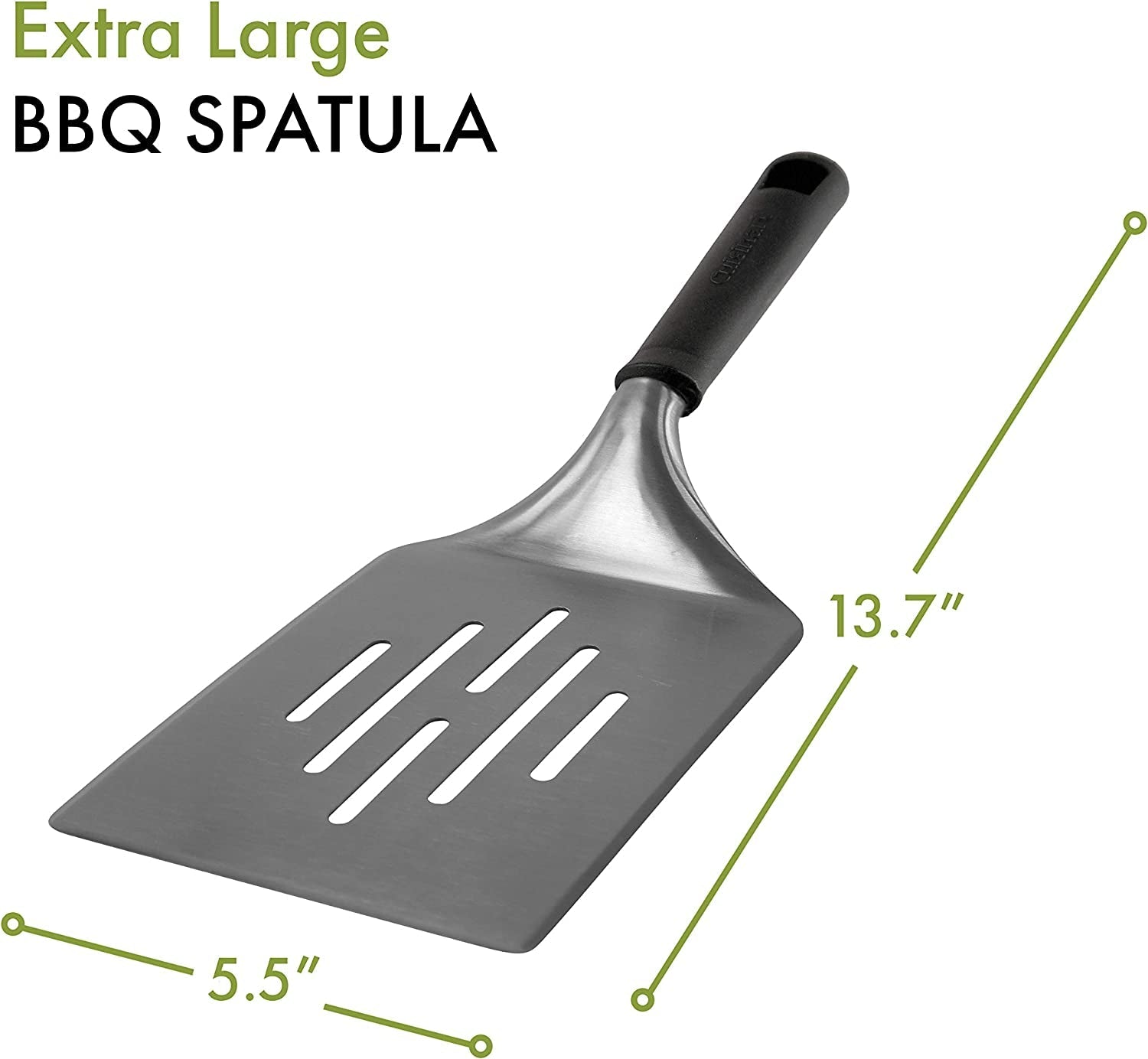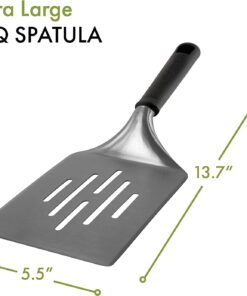 - EXTRA-LARGE SIZE: The 5.5 x 6.5 stainless steel spatula head is ideal for lifting multiple burgers. steaks or other large cuts of meat effortlessly.