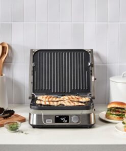 - INCLUDED: Removable and reversible dishwasher-safe nonstick cooking plates that store easily. dishwasher-safe scraping tool for easy cleanup. instruction manual and gourmet recipes for your enjoyment