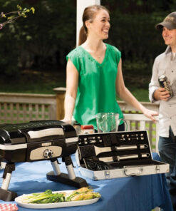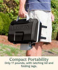 Enjoy the ultimate in convenience and performance with the compact yet powerful Cuisinart Petite Gourmet Gas Grill. This portable grill delivers big flavor in a small package. making it perfect for camping trips. tailgating. or everyday grilling at home. The 150 sq. in. porcelain-enameled cooking grate offers even heat distribution and ample space to prepare up to 8 burgers. steaks. or chicken breasts. Fueled by a 5.500 BTU burner with twist-to-start ignition. this camping grill heats up quickly and uses less propane than full-sized propane grills. Folding legs. a lid latch. and an integrated handle make it easy to transport and store. so you can grill delicious meals anywhere you go. Compact. efficient. and versatile. it’s the perfect companion for outdoor adventures or small-space grilling.
