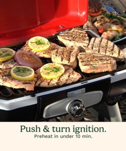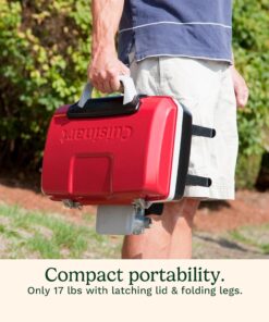 Cuisinart Petite Gourmet Portable Gas Grill. Compact & Lightweight Tabletop Small Grill for Bbqs. Camping. Tailgates & Small Spaces. 5.500 BTU Burner Folding with Carry Handles. Red