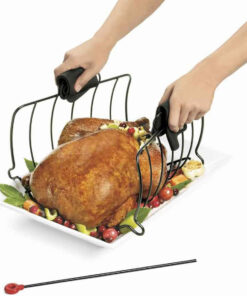 Food preparation becomes a pleasure with the collection of skillfully designed Cuisipro tools. Each tool has been created to perform a specific task with precision and ease while always delivering the finest quality. Roast and serve. the removable roasting rack with convenient handles easily transports meat from the roasting pan to the serving tray in one motion without awkward lifters. The removable pin at the bottom helps disassemble the rack. while the non-stick surface makes cleanup quick and easy. The rack can hold up to a 25 pound/11 kg bird or roast and folds up for compact storage. Fits a 16 x 13 rectangular roasting pan.