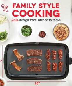 - SPACIOUS COOKING SURFACE: Measuring 20 x 10.5. this electric griddle is perfect for family meals. entertaining. or cooking a variety of foods for picky eaters all at once. The Heating Probe allows for precise control over your cooking temperature. while the dishwasher-safe removable Cooking Plate makes cleaning a breeze.