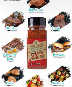 Elevate every dish by seasoning it with flavor that packs a punch in every bite! DennyMike’s Cow Bell Hell seasoning blend is excellent for BBQ rubs and spices for smoking or grilling.