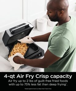 - UP TO 75% LESS FAT: Air fry crisp with up to 75% less fat than deep frying (tested against hand-cut. deep-fried French fries). using the included 4-qt. crisper basket.