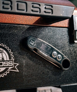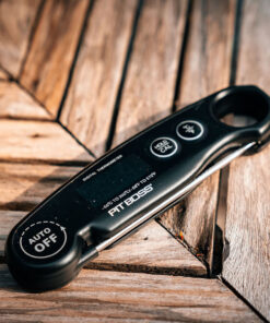 The Pit Boss Digital Meat Thermometer is ideal for outdoor cooking. grilling. smoking. and barbecue. Simply insert the long temperature probe into your food for instant results. The easy-to-read LED screen reads precise temperatures and can measure in Fahrenheit or Celsius. The stainless-steel probe is perfect for heavy-duty use and features a convenient collapsible design. Measure your desired temperatures instantly and precisely with this digital meat thermometer. User ManualÂ