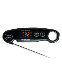 The Pit Boss Digital Meat Thermometer is ideal for outdoor cooking. grilling. smoking. and barbecue. Simply insert the long temperature probe into your food for instant results. The easy-to-read LED screen reads precise temperatures and can measure in Fahrenheit or Celsius. The stainless-steel probe is perfect for heavy-duty use and features a convenient collapsible design. Measure your desired temperatures instantly and precisely with this digital meat thermometer. User ManualÂ