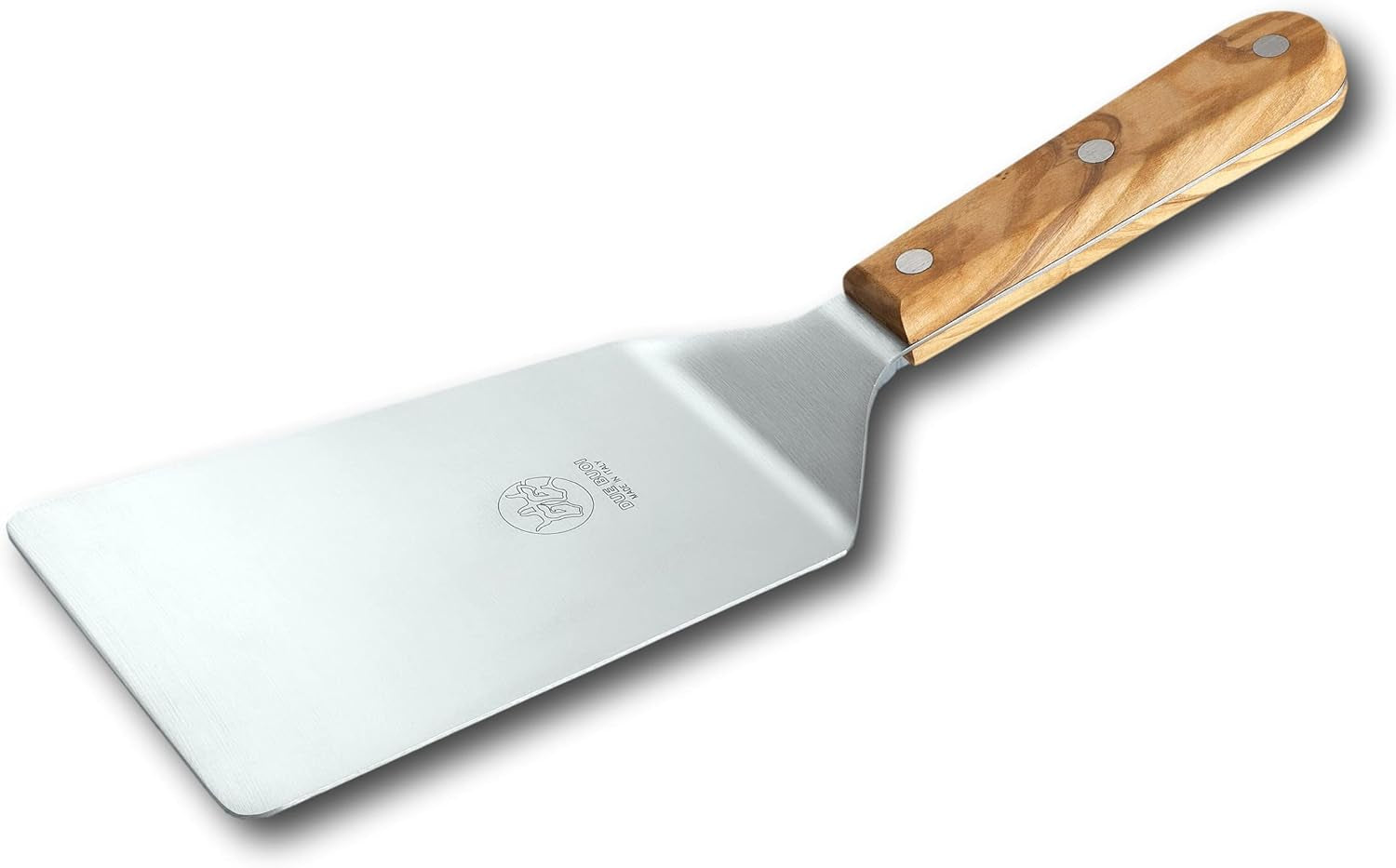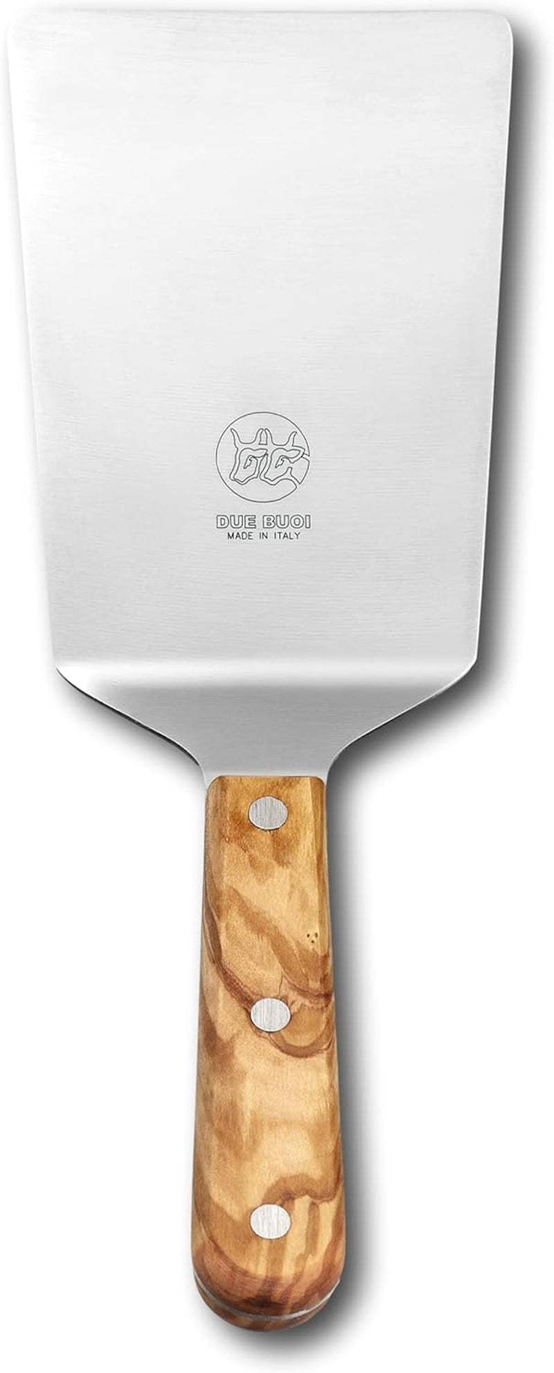 DUE BUOI Wide Spatula Olive Wood Handled and Stainless Steel Rivets – Blade 4 X 6.1/3 – Good for Burger Kitchen Bbq Grill Griddle Pastry. Non-Stick Durable. ICQ Approved.