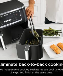 - 2 FOODS. 2 WAYS. AT THE SAME TIME: Eliminating back-to-back cooking like a traditional single-basket air fryer with 2 independent XL air fryer baskets.