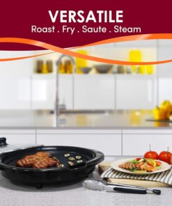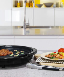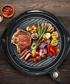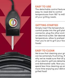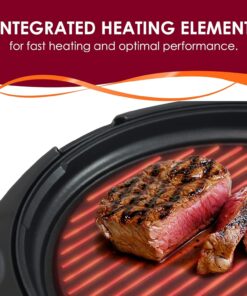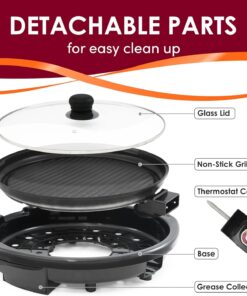 Elite Gourmet EMG-980B Smokeless Electric Tabletop Grill Nonstick. 6-Serving. Dishwasher Safe Removable Grilling Plate. Grill Indoor. Tempered Glass Lid. Adjustable Temperature. 14 Black