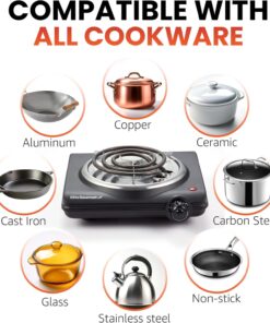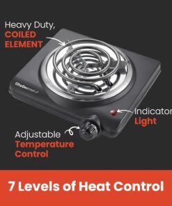 - ADJUSTABLE TEMPERATURE CONTROL: Quickly reach & maintain 1 of 6 desired heat settings with the variable temperature knob. You can use it to cook. keep food warm or boil water.
