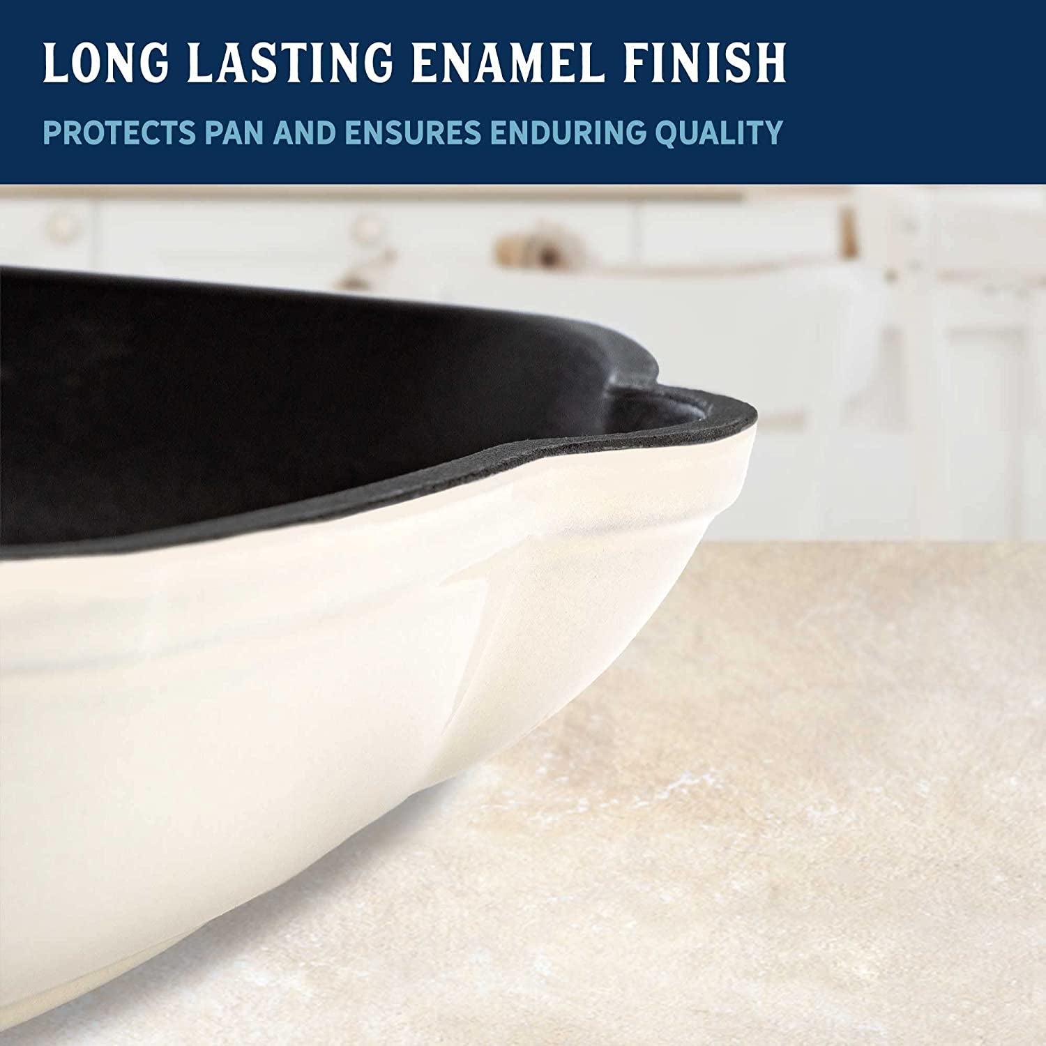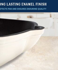- BEAUTY MEETS FUNCTION: Easily go from stovetop. to oven. to table. The smooth enameled exterior deserves to be on display while the matte black enameled interior delivers perfect results every time without the seasoning and maintenance of raw cast iron!