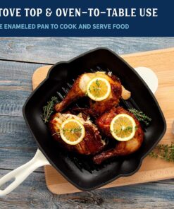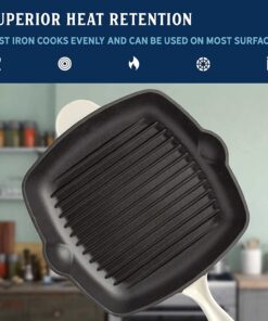 - CONSTRUCTED FROM HEAVY DUTY CAST IRON: Our 11 cast iron grill pan delivers even heat distribution and retention for perfect cooking results! Bake or roast up to 500°F. You can also sear and sauté with this grill pan on electric. gas. glass. induction. or any stove top.