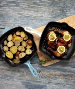 The Country Living Cast Iron Square Grill Pan lets you enjoy perfectly grilled meats. vegetables. and more! Allow Country Living’s cast iron skillet to reignite your passion for cooking. Cast iron has natural non-stick properties that only improve over time. offers superior heat retention. is oven safe up to 500°F. and is durable enough to go from stove to oven to table. As an added bonus. you’ll fortify your diet with iron by cooking with this heavy-duty cast iron square grill pan. All of Country Living’s cast iron pans are compatible with any kind of cooktop. including induction. and come pre-seasoned with vegetable oil. Your skillet’s seasoning will only improve with age. much like a fine wine. You’ll fall in love with the time-honored advantages of cooking with Country Living’s Cast Iron Square Grill Pan.