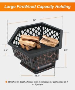 - 【Capacious Bowl】-Size: 24 x 24 x 25 inches; This garden fire pit has a capacious hexagon bowel. Depth is deeper than most. can keep plenty of wood burning to make a fire of whaterver size you want. Perfect for 4 to 6 people to sit around