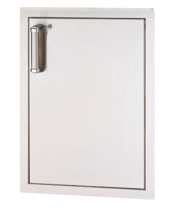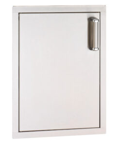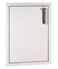 Complete your Fire Magic outdoor kitchen with the Premium Flush Mount Vertical Single Access Door. This access door is built with durable 304 stainless steel. featuring double-walled. foam-insulated construction for a solid feel and extra durability. The soft-close door hinges ensure a quiet and secure close every time. preventing slamming and providing convenience. The design of this access door complements Fire Magic Aurora and Echelon series grills. adding both functionality and style to your outdoor cooking area.