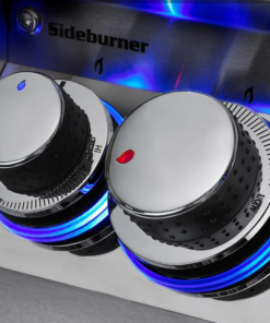 - Back-lit LED control knobs and interior halogen lights let you grill day or night