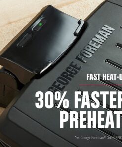 The GEORGE FOREMAN Submersible Grill series eliminates the hassle of complicated clean-up. Remove the control panel and place all additional components in the dishwasher or sink for a complete clean. With a 30% faster preheat*. mouth-watering meals are made fast. while compact design makes vertical storage easy. Allows up to 4 servings. so you can conveniently cook for the whole family!