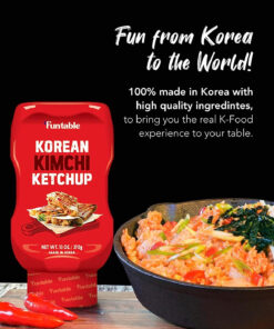- FUNTABLE KOREAN KIMCHI KETCHUP (370g/13oz) – Explore Sangkyung’s groundbreaking Kimchi Ketchup. meticulously crafted to retain the genuine taste of traditional Korean kimchi. It’s a mildly spicy condiment suitable for individuals of all ages. offering a healthier and flavor-packed alternative to ordinary ketchup. Elevate your culinary creations with the bold flavors of kimchi.