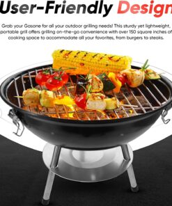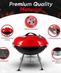 Gas One – 14-Inch Portable Barbecue Grill with 3-Point Locking Lid for Heat Preservation – Dual Venting System – Small Charcoal Grill for Backyard. Camping. Boat