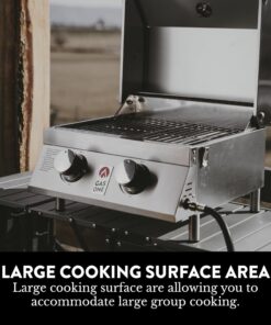 - Heat Control and Built-In Thermometer: The camping grill is very easy to use even by beginners. The heat can be easily adjusted using the dials in the front and the built-in thermometer displays the temperature for even and effective cooking.