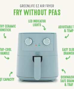 Make healthy meals quickly with the EZ Air Fryer. With its spacious 4.5QT capacity. you can simply add your food. choose your preferred time and temp. and let the EZ Air Fryer do all the work. The handy indicator lights let you know when your food is ready. and the stay-cool handle makes transferring seamless. The best part? Our signature healthy ceramic nonstick not only makes cleanup a breeze. but is free of PFAS. PFOA. lead. and cadmium so you can cook every meal without worry. For the easiest way to whip up healthy and simple meals. choose the GreenLife EZ Air Fryer.