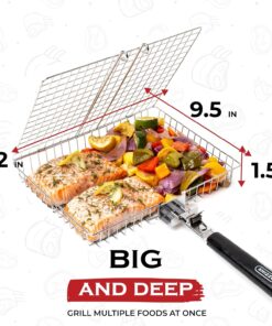 Grill Basket. Barbecue BBQ Grilling Basket . Stainless Steel Large Folding Grilling Baskets with Handle. Portable Outdoor Camping BBQ Rack for Fish. Shrimp. Vegetables. Barbeque Griller Cooking Accessories
